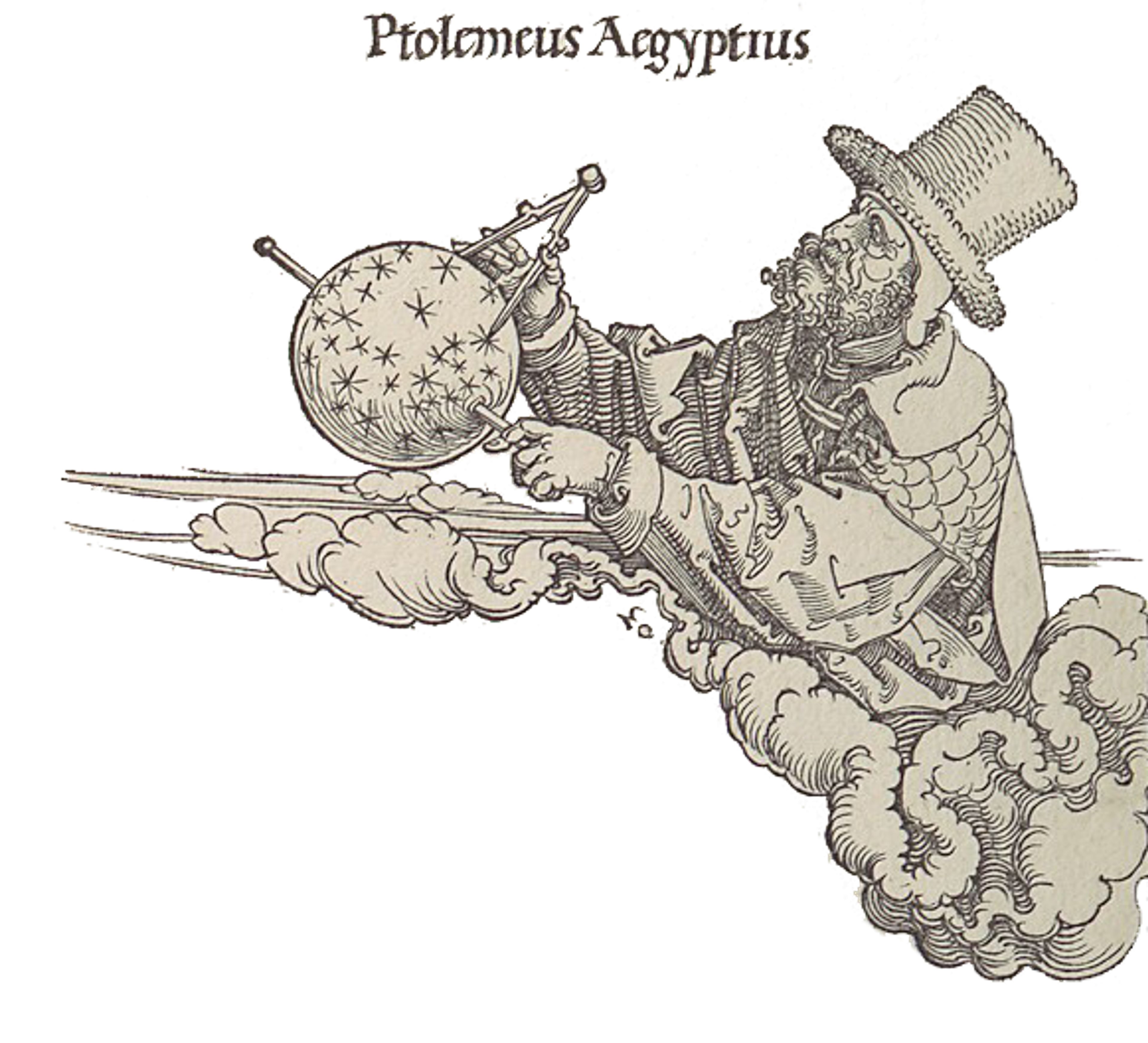 The sheet depicting the northern hemisphere also featured the likenesses of early astronomers: Aratus, Ptolemy, Marcus Manilius, and Azophi Arabus (ʿAbd al-Raḥmān ibn ʿUmar al-Ṣūfī).