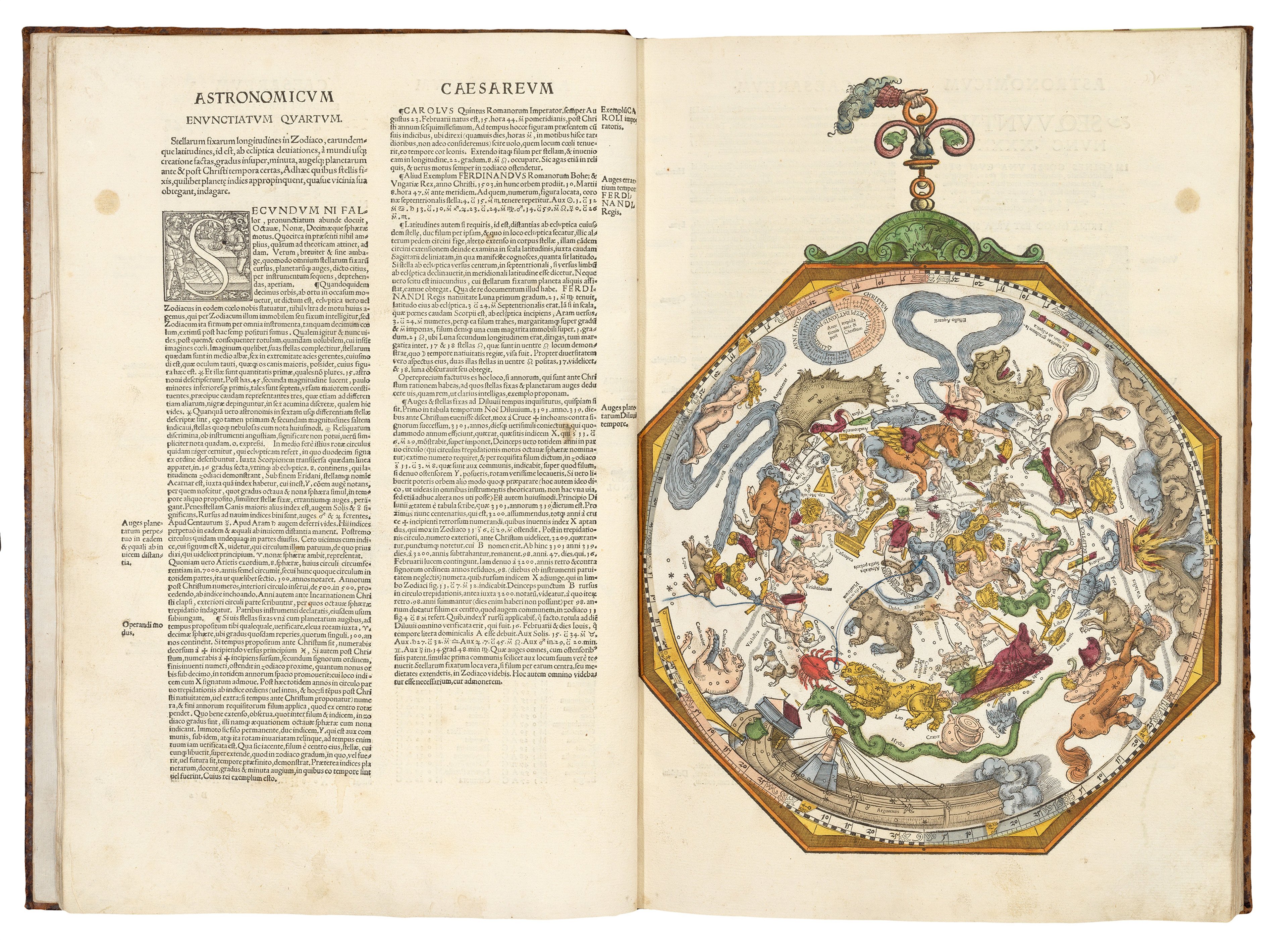 These two hemispherical charts were further developed by Petrus Apianus’ in his illustrious instrument work in Astronomicum Caesarium (1540), and in the 1541 star maps of Transylvanian mapmaker and theologian Johannes Honter (1498-1549).
