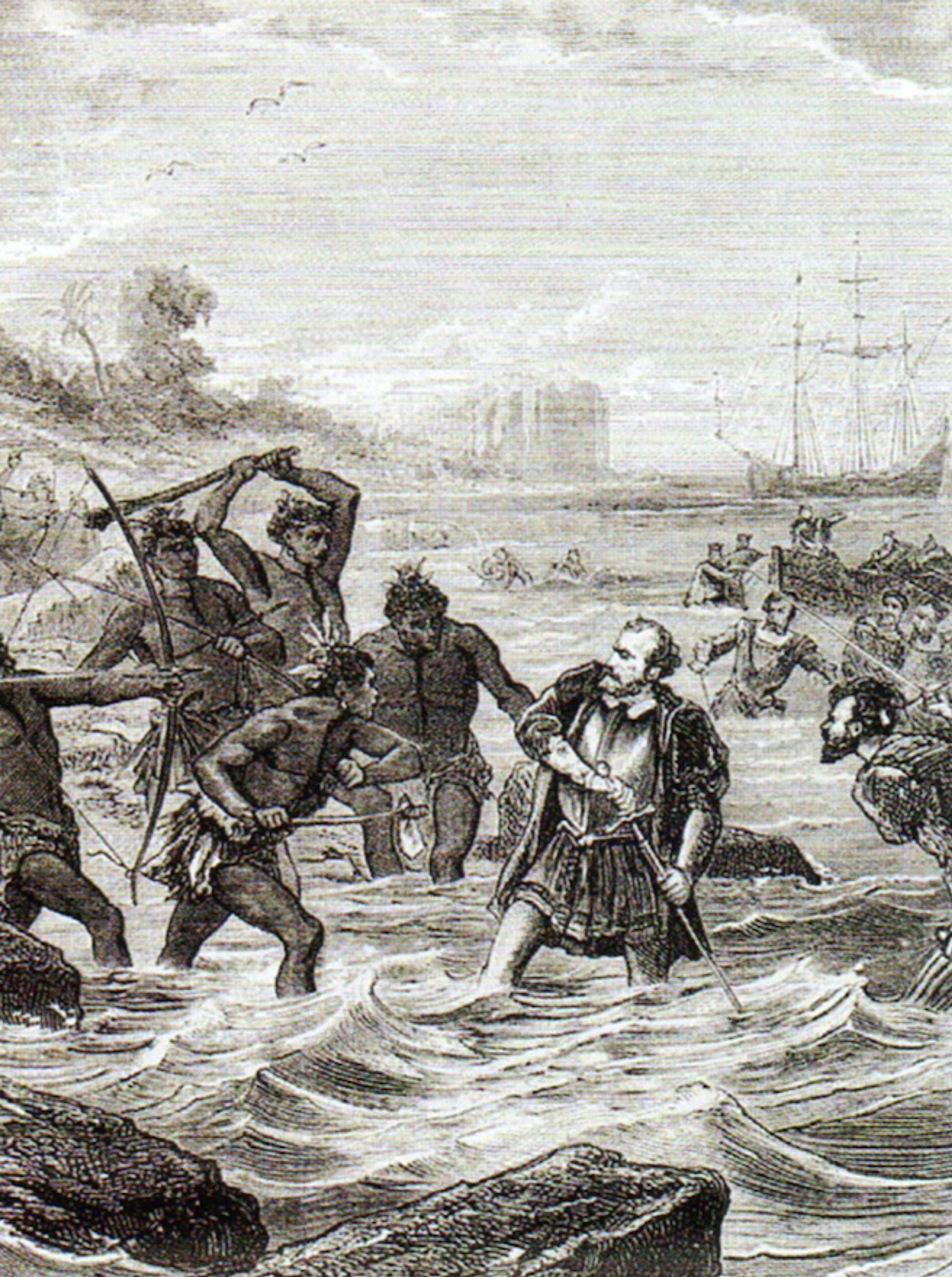 An illustration of Magellan's death during the Battle of Mactan in Cebu (1521). Public Domain.