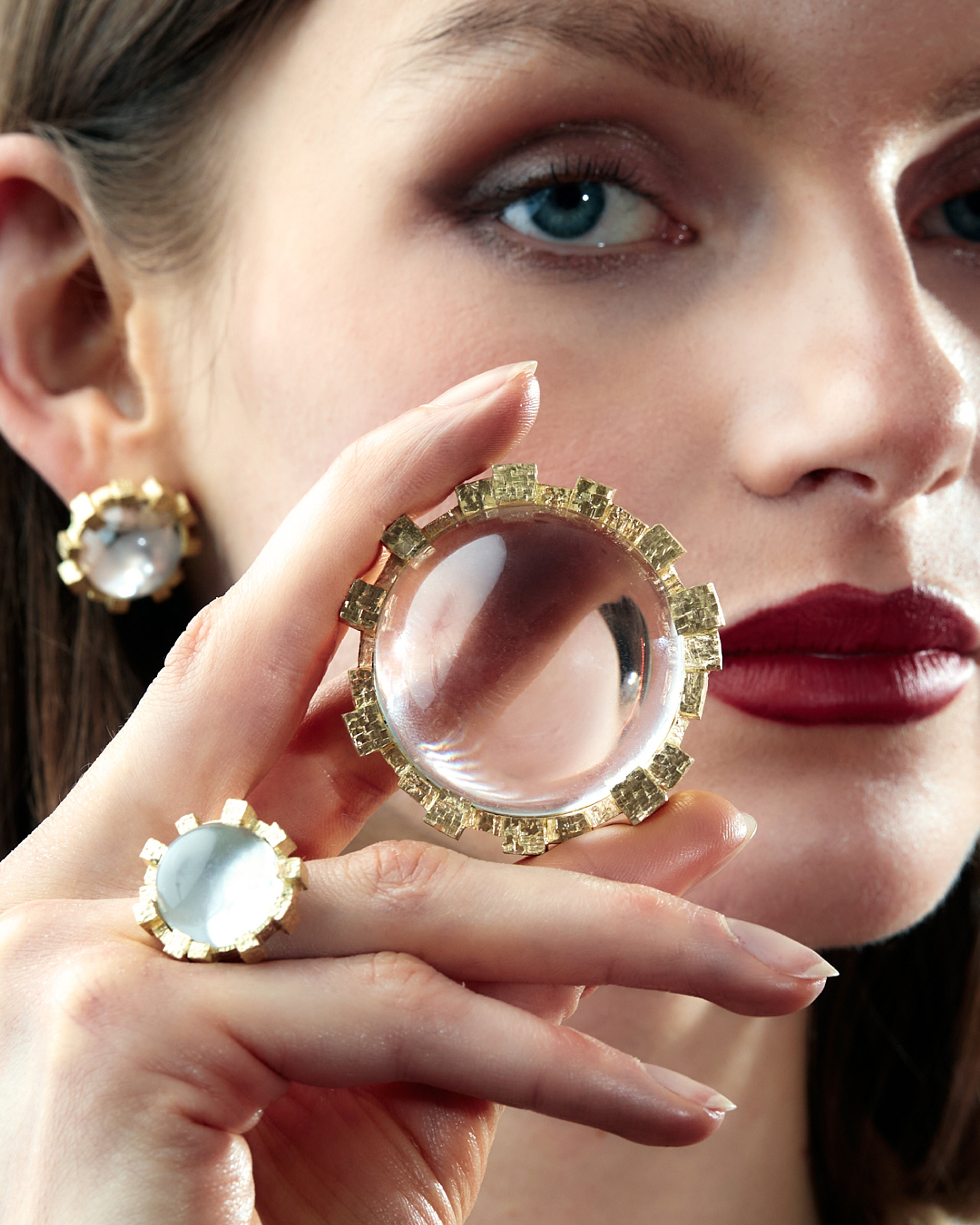 Presenting the first collaboration between the Sunderland Collection and GRIMA: a limited edition collection comprising a magnifier, a ring and a pair of earrings.