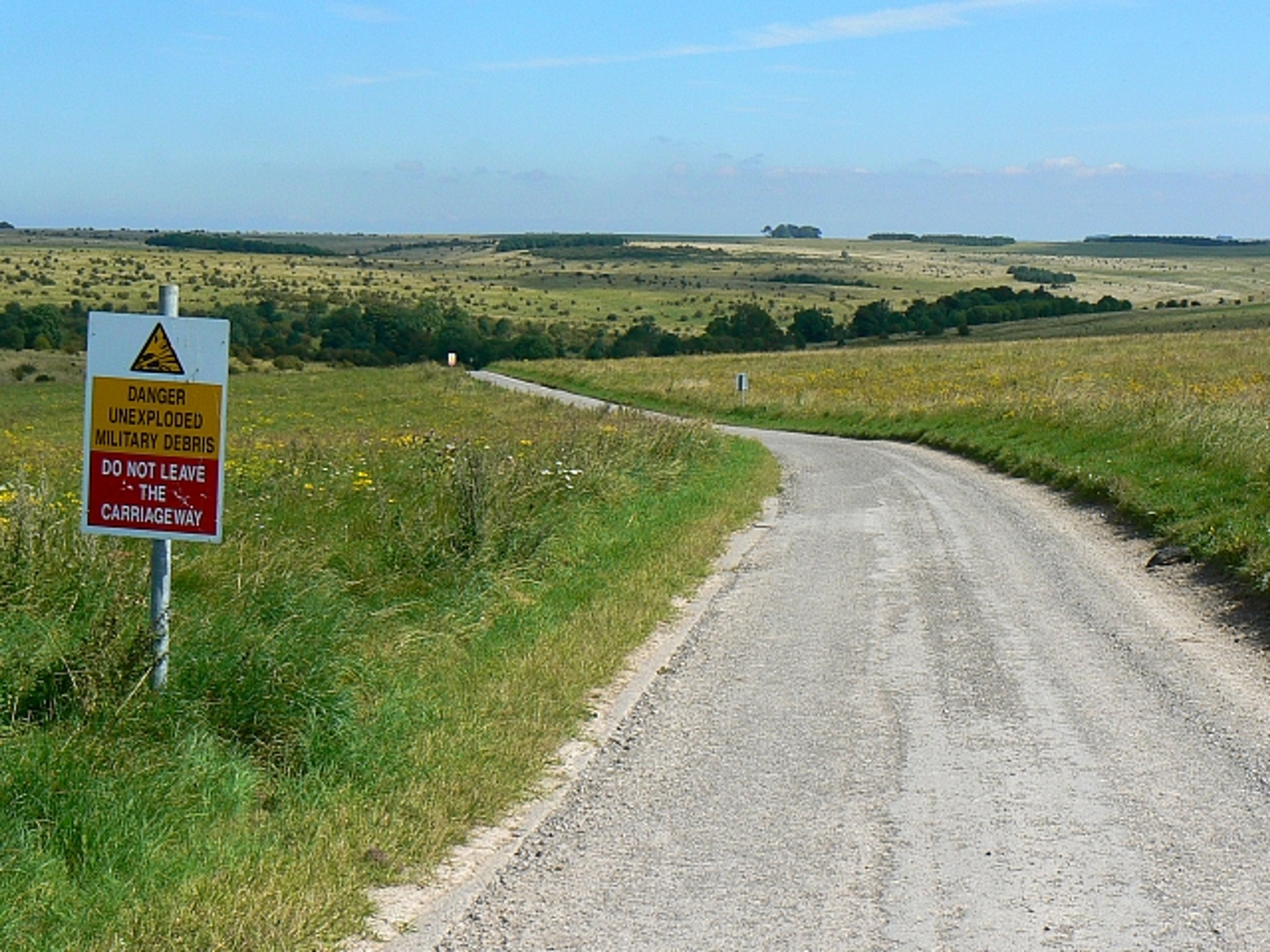 The gradual take over of British countryside would close and restrict a criss-cross of public footpaths and communities would be moved out of their homes for their own safety - most famously in the village of Imber. To this day, when the red flags are hoisted on the perimeters of the Plain, it is a warning that live firing is taking place, and that all public rights of way and footpaths are closed.