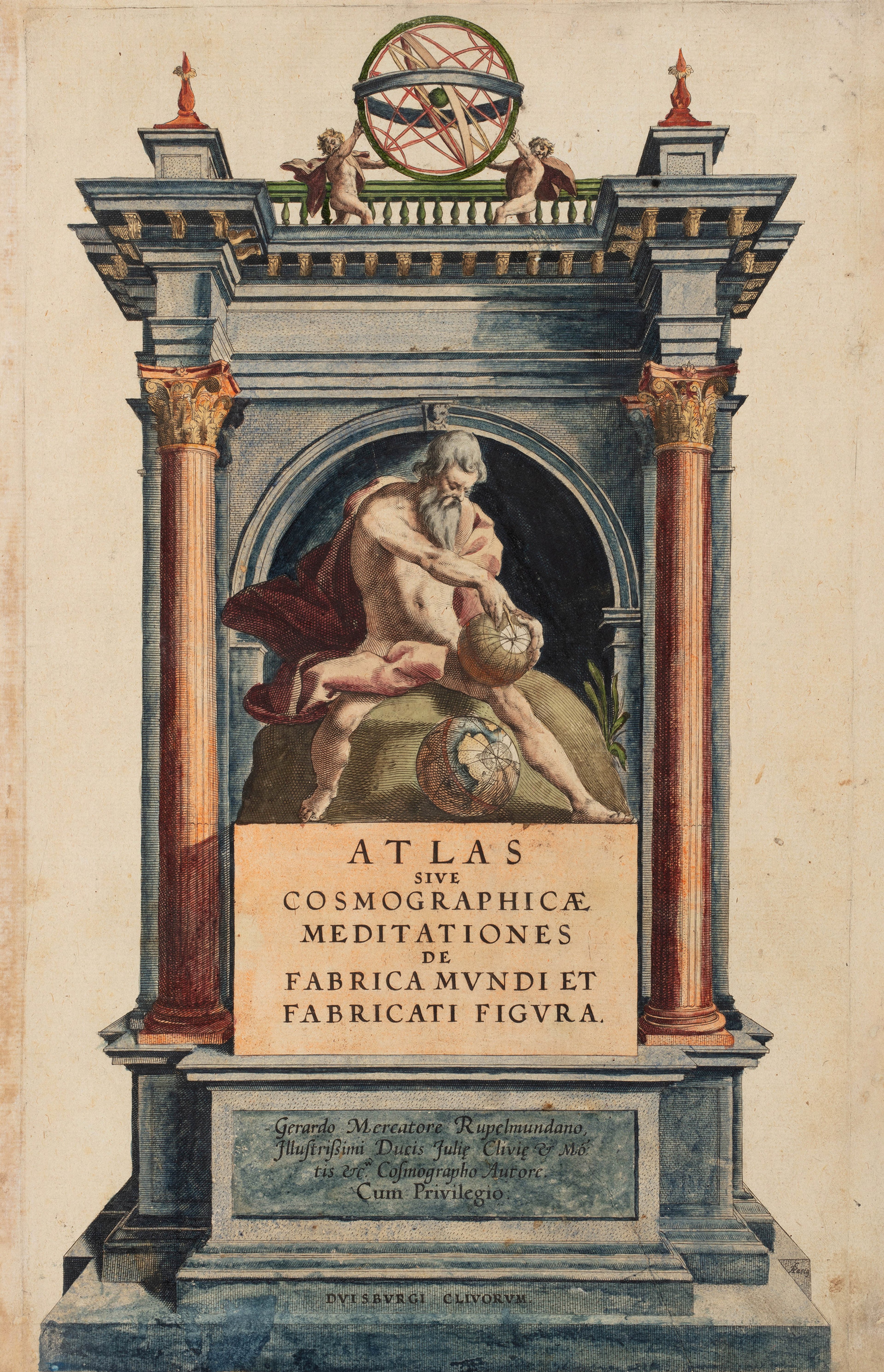 It is widely considered to be the first modern scientific atlas. It is also the first work to use the term 'atlas' in a title for a collection of maps. In Greek mythology, Atlas was the Greek god who bore the weight of the Earth and the Heavens on his shoulders, a punishment given to him by Zeus for warring with the Olympian gods.