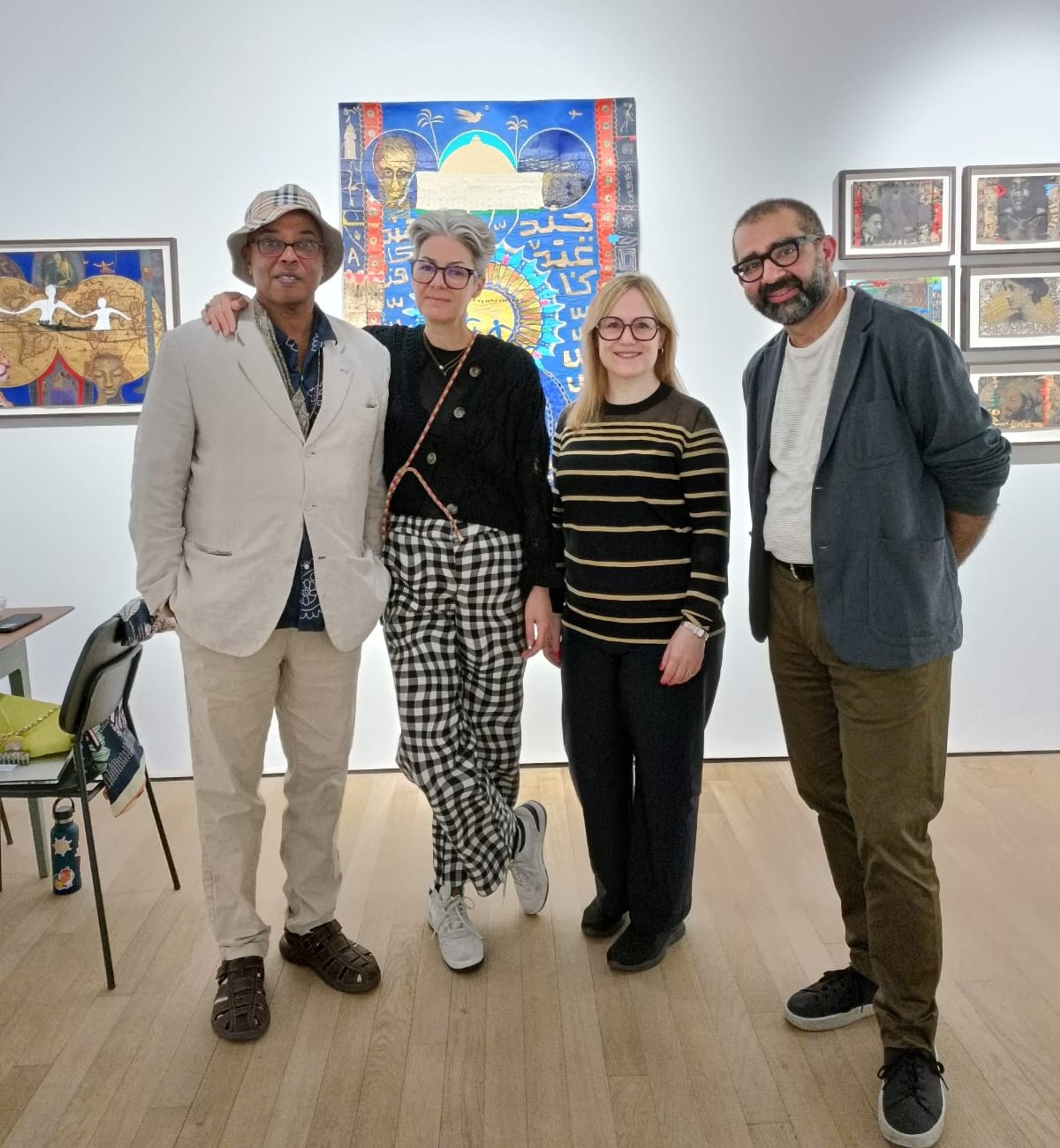 Fathi Hassan, Beth Greenacre, Helen Sunderland-Cohen and Hammad Nasar during a gallery tour for Shifting Sands, 1 June 2024.