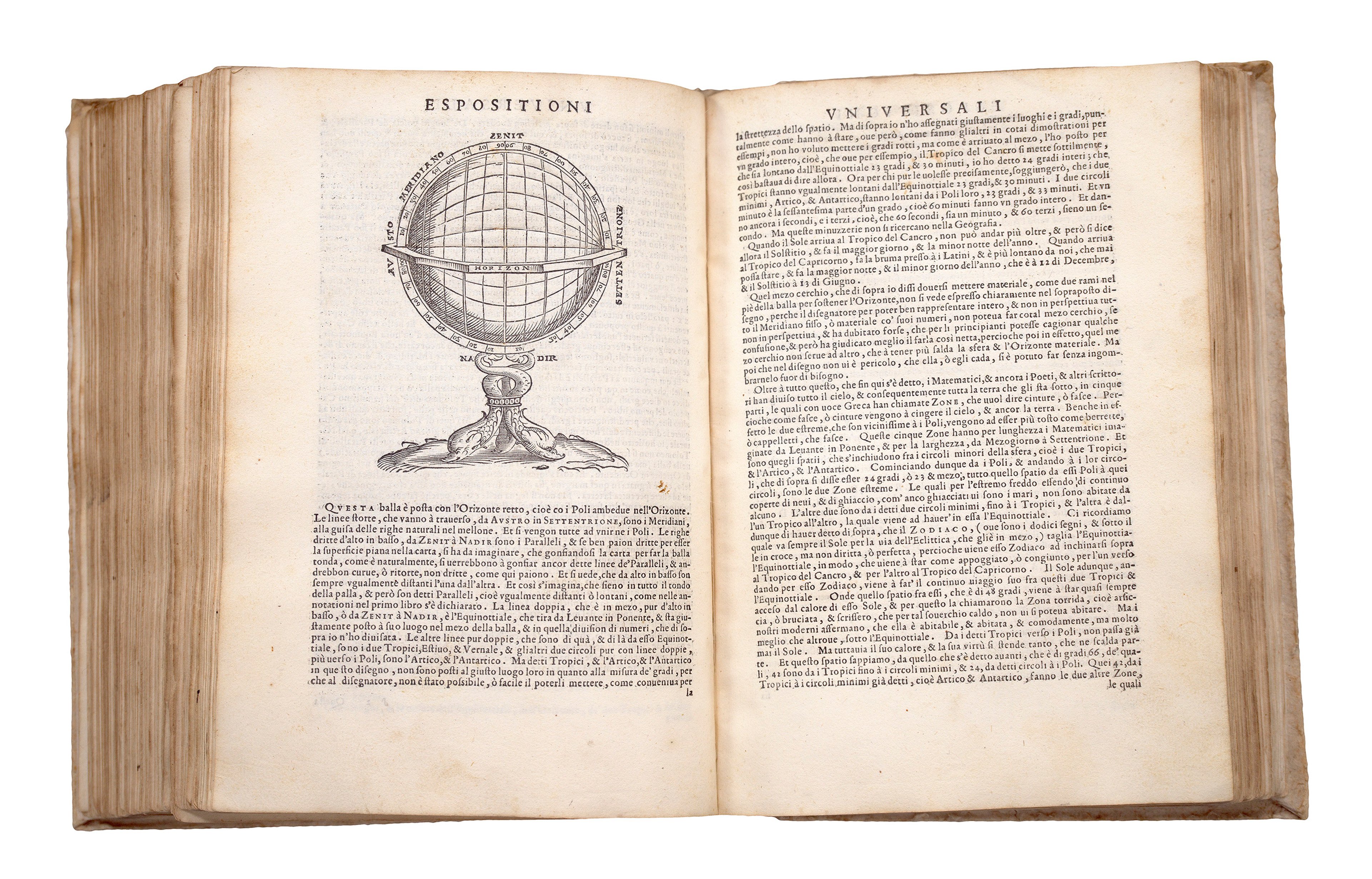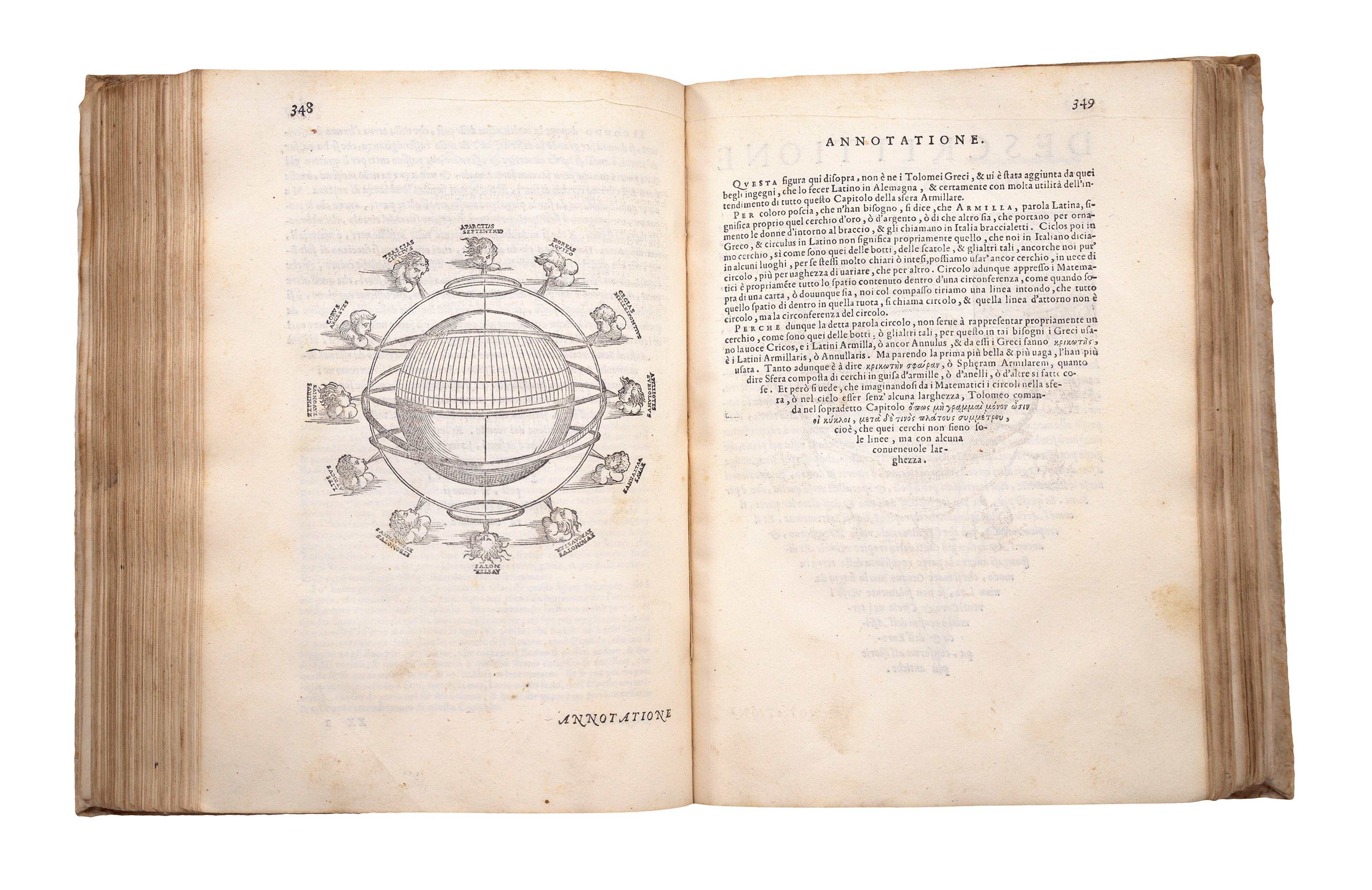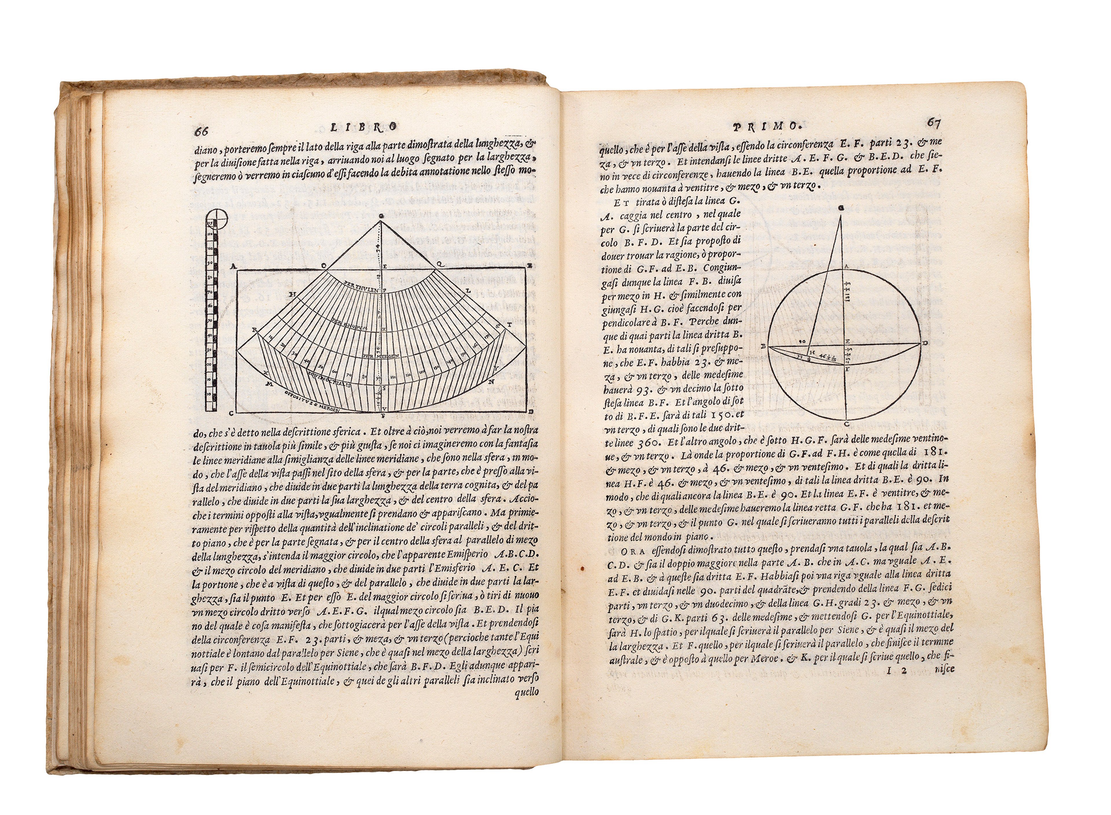 The text is in vernacular Italian rather than Latin, which contributed to the increasing accessibility of Ptolemy’s writing as it could be read and understood by a much broader audience. To make the book even more accessible to the general public, Ruscelli had it printed in a smaller format than the grand, leather-bound, richly coloured atlases made for wealthy patrons. It is uncoloured and apart from the maps, contains only a few illustrative diagrams of geographical instruments, optics, and projection charts.