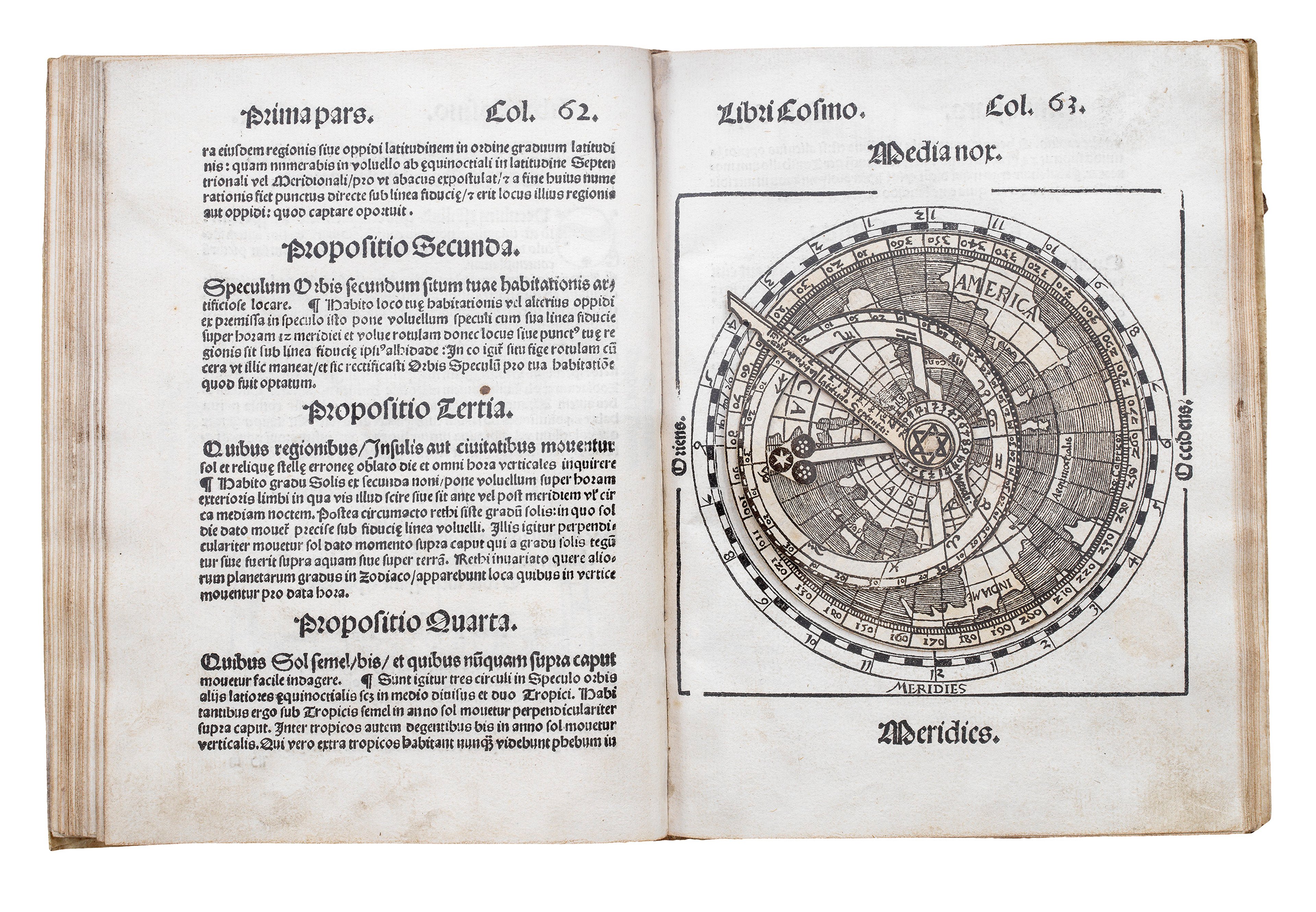 Apianus’ student Gemma Frisius, a renowned instrument maker, revised the textbook in 1529 and adding more volvelles, including one illustrating the phases of the Moon. He also created a beauitful version of Apianus' map, a copy of which is in the Sunderland Collection.