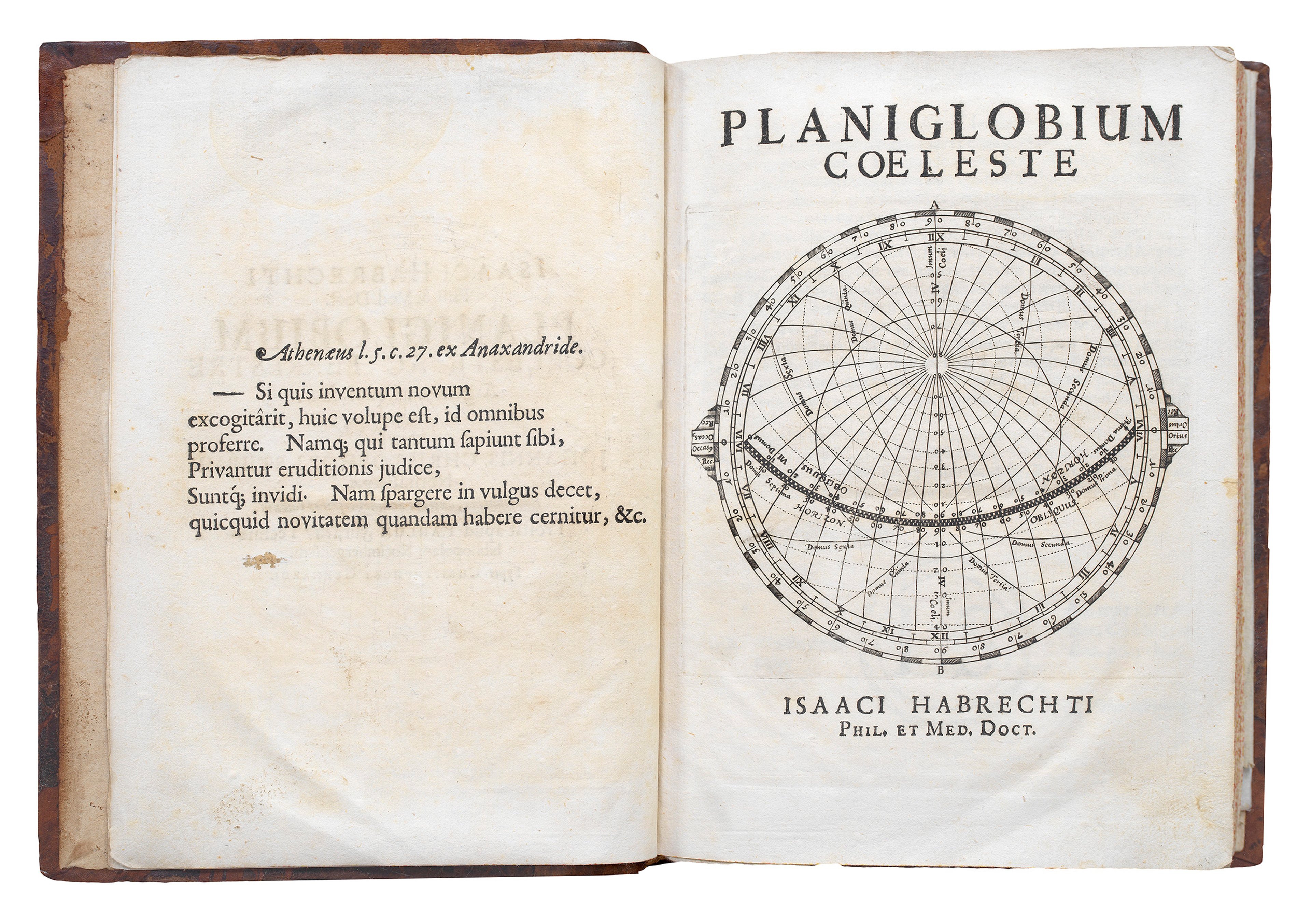 Habrecht's book was a key reference text containing a series of diagrams including two planispheres dating back to 1628. One of the sources for his work was Petrus Plancius, whose elegant world map (1594) can be found in the Sunderland Collection. In 1621, Habrecht produced a celestial globe reflecting Plancius’ knowledge and including six constellations attributed to him.
