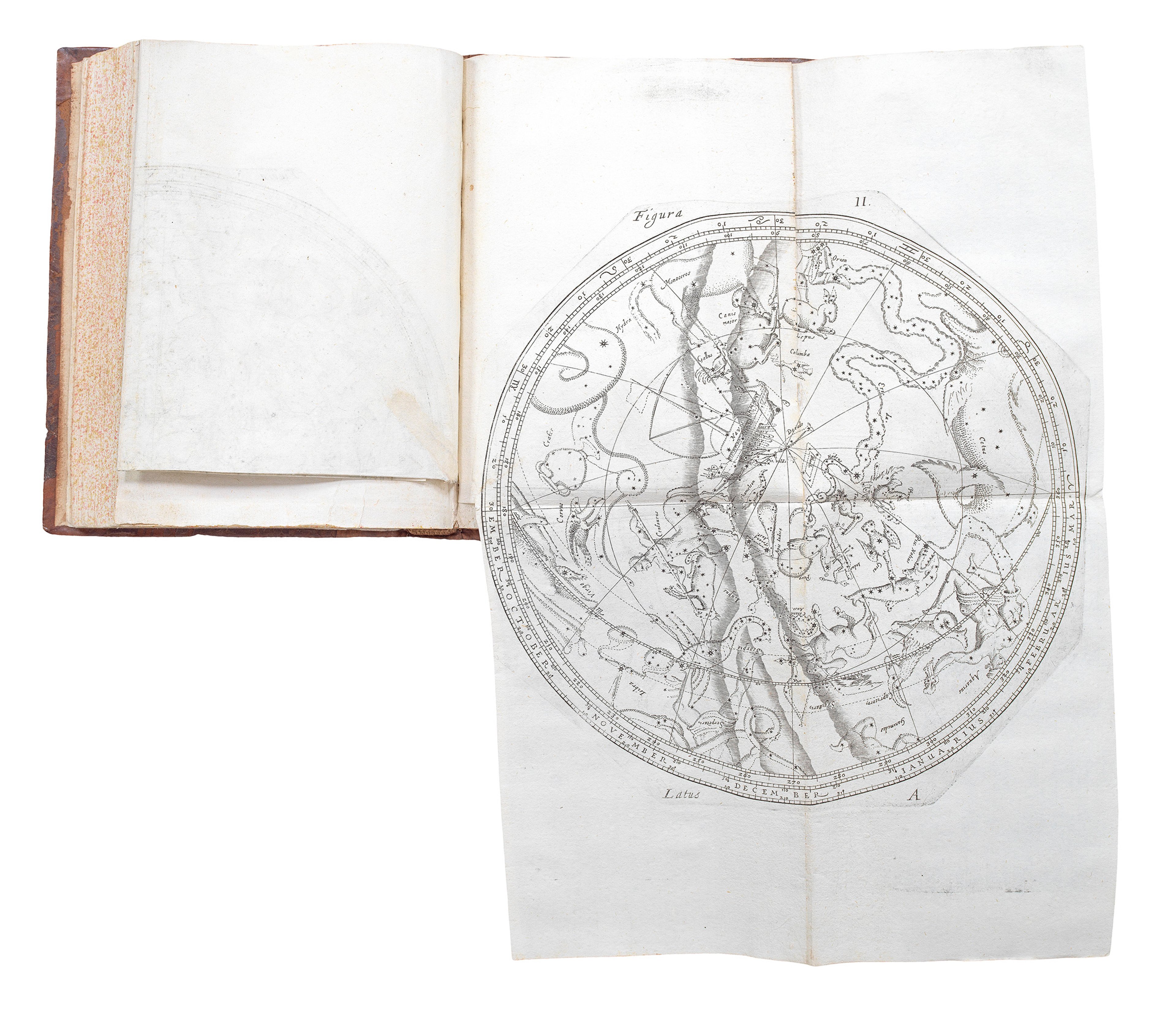 The example in the Sunderland Collection is rare because it contains all of the planispheres and other illustrations: it is a complete first edition of Sturm's expanded work. The book also links earlier objects from the Collection, such as the Plancius world map, with the other books of science.