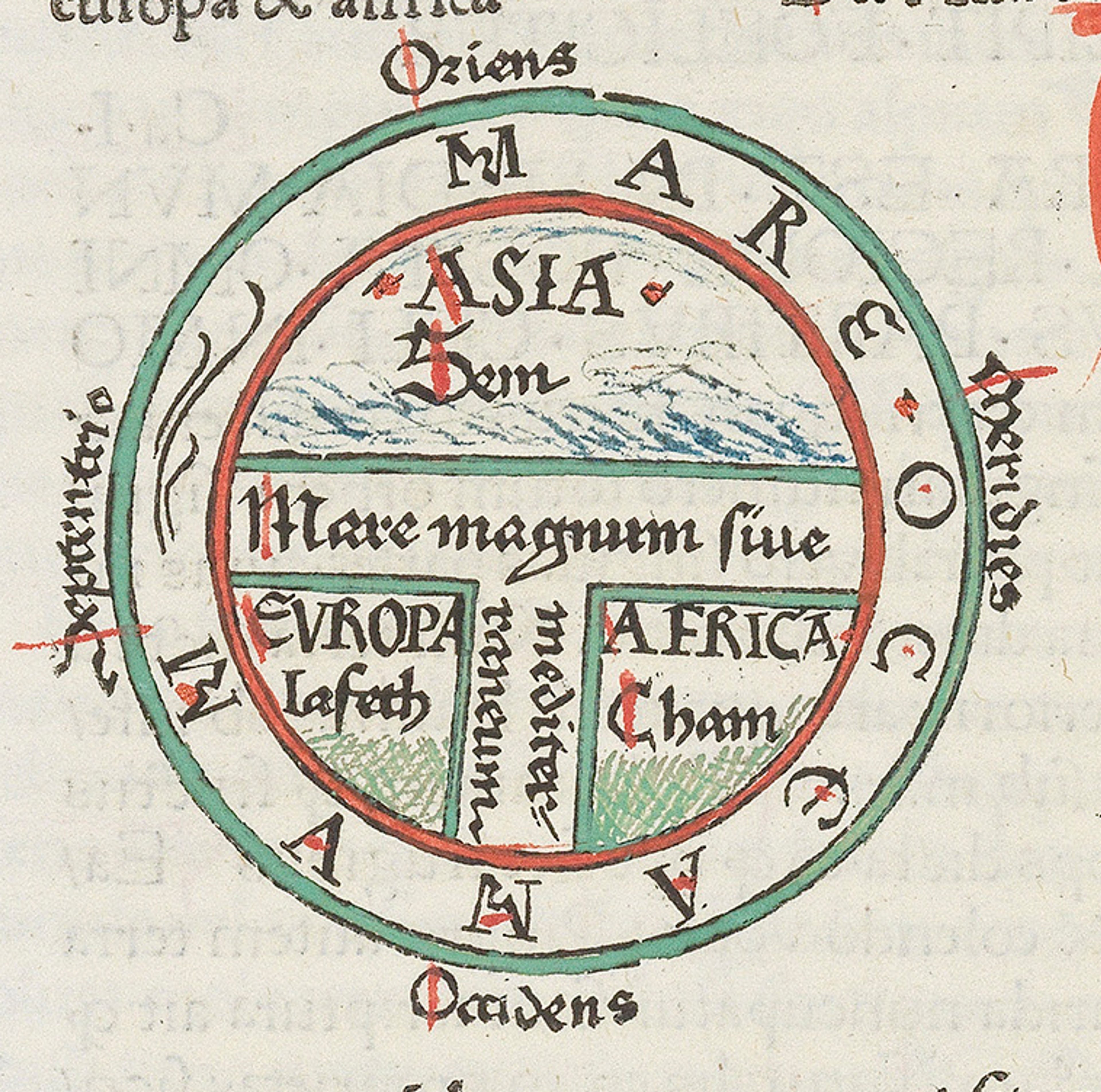 Close up of the T-O map featured in he 1472 work by Isidore de Seville