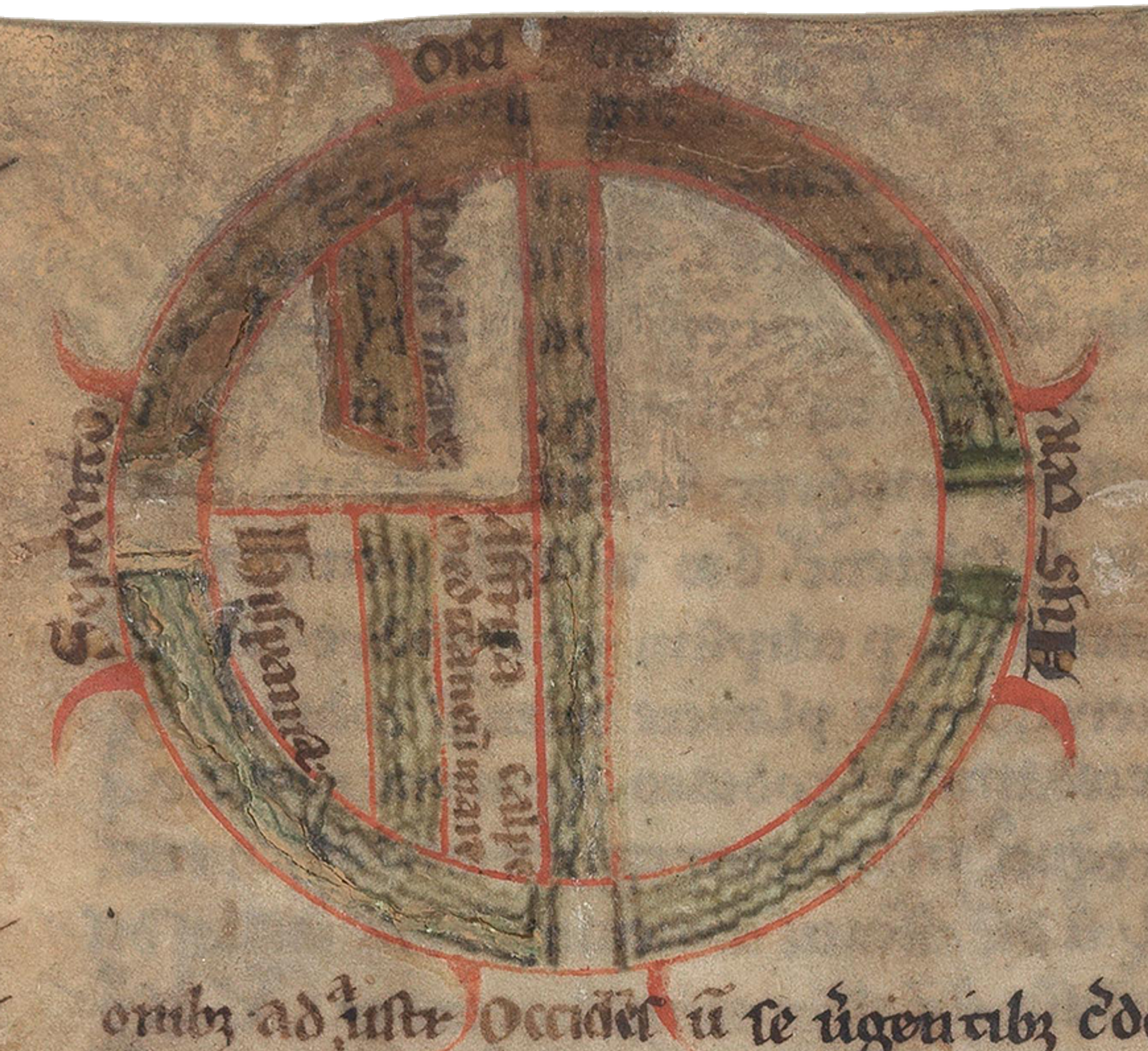Close up image of William de Conches circa 1200 manuscript T-O map